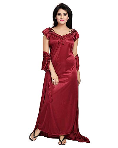 Perfect as Anniversary Gift for your Wife Live in Style With Nightwear Collection Robe is simple and best fitted for all, tie-up as per your fit. Short Nighty is above knee and Robe is Knee length