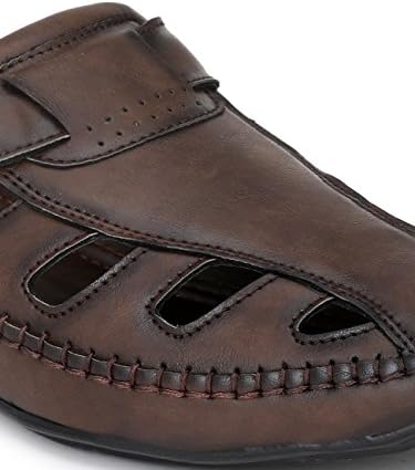 El paso brings you this cool, trendy pair of roman style strappy sandals . closure type of the shoe is slip-on with velcro closure, The outer material of the shoe is pu and out-sole is made of TPR (rubber). these durable men’s shoes are made by hand and feature a sleek, classic and ultra comfort design.The casual design makes them perfect for daily use whereas the design aesthetics make it the right choice for wearing to a party.
