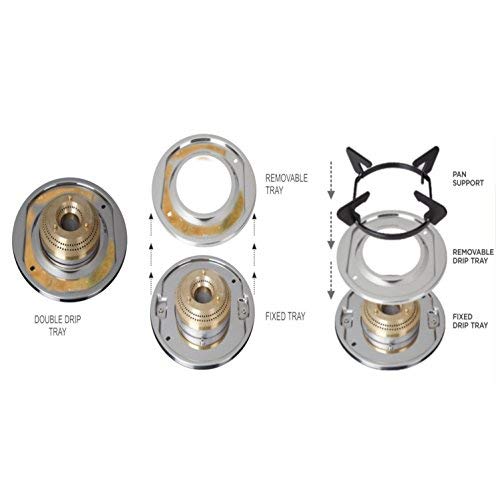 The double drip trays are perfect to absorb all spills on stove top, so easy to wipe them off. No messy goop or grease after cooking, just lift removable tray, clean and place it back.
