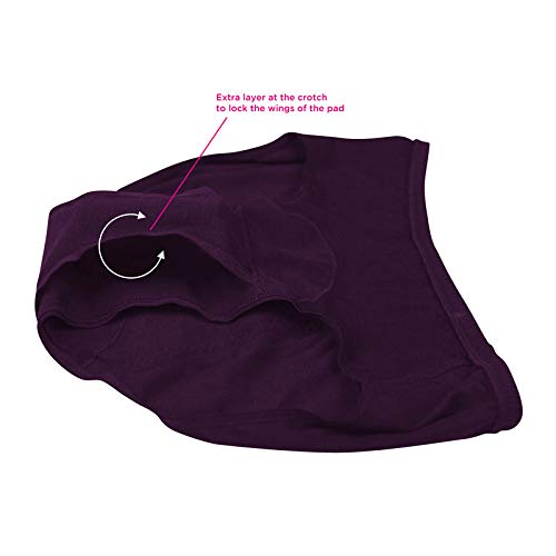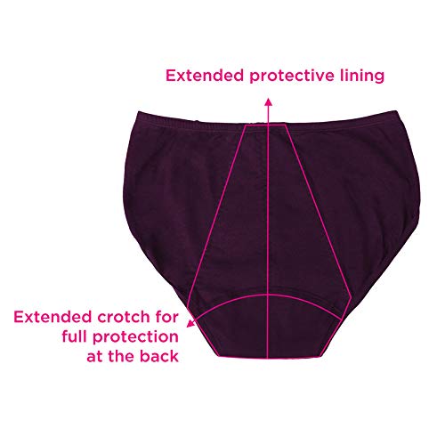 To be worn with sanitary napkins or cups on heavy flow days or panty liners on light flow days.