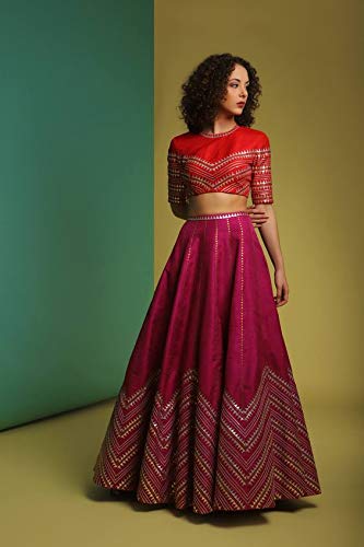 Lehenga Fabric: Taffeta Lehenga With Heavy Zari Embroidery Lehenga Color: Pink Lehenga Length: 44 Inch Lehenga Flair: 3 Mtr Choli Fabric: Georgette With Zari Embroidery Choli Color: Red Dupatta Fabric: Georgette Occasion: Casual ,Festival ,Party Wear Work: Embroidery Work Wash Care: Dry Clean Only