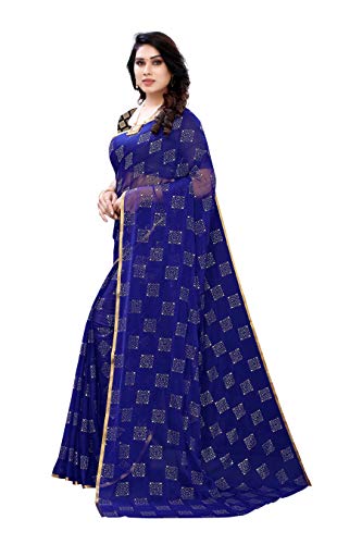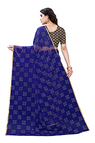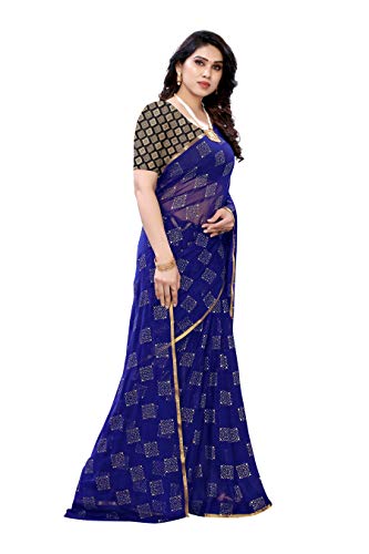 Fabmora Women’s Beaded Foil Printed Chiffon Saree With Jacquard Blouse Piece