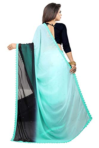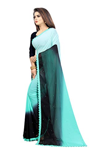 Sky Blue and Blue Dual Color Moti Work Georgette Saree with Unstitched Blouse Piece
