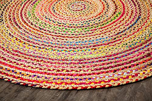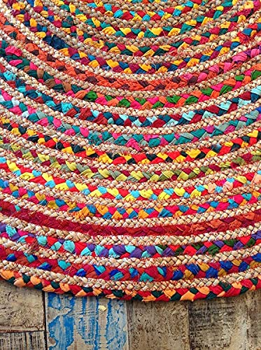 Flames Handwoven Natural Fibres, Braided Reversible Jute and Cotton Round Rug/Carpet for