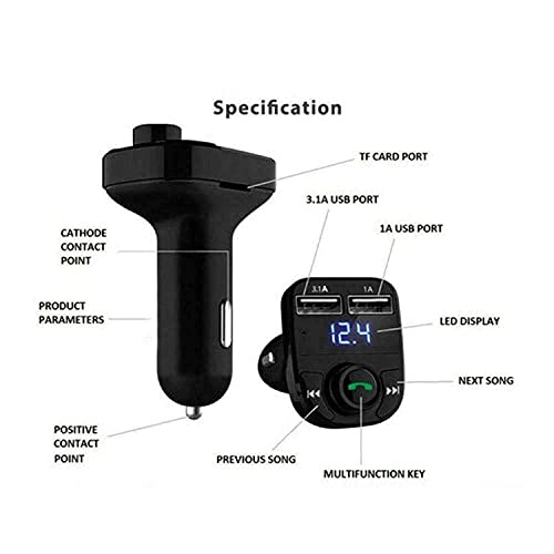 Support TF card and U Disk ,refined and small Portable Automatic storage memory after power off(only with micro SD card) Anwser/hang up the call Connect navigation Ultra-low power,power saving Only consumpt 5% of electricity when play 1 hour music with bluetooth Built-in intelligent microphone for excellent sound quality Product specifications: Voltage: 12~24V Support music format: MP3/WMA/APE/FLAC/WAV Frequency: 87.5~108MHz TF card: 512M~32G (Not included) U Disk: 512M~32G (Not included) SNR: 85 db (fm: 65dB) Transmission Distance: <5m Operating temperature: 0~60 celsius Color: black Bluetooth version: bluetooth 3.0 The version V42 EDR Support hands-free phone built-in microphone, safe and convenient to answer the phone. The call handling noise CVC wind noise suppression full-duplex communication technology it can charge for handheld terminal equipment with car charger, SV-1000mAh output can charge for handheld terminal equipment Read TF Card music in TF Card insert TF card expansion slot of the equipment, the equipment will automatically recognize and play TF card MP3/WMA in music files Product Dimensions 11 x 5.5 x 3.5 cm; 150 Grams