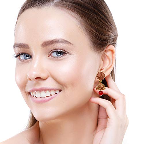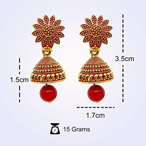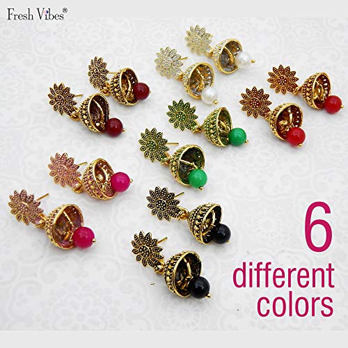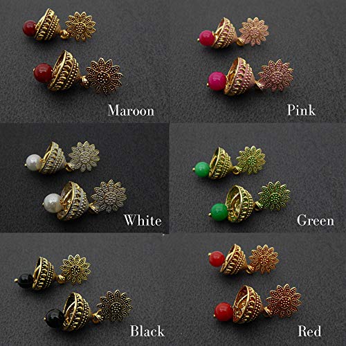 ✅ Style : Traditional Indian latest design gold plated jhumke with simple & stylish round color design at the top and small jhumki with color beads at the bottom.