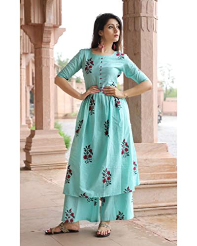 Double your fashion flair as you wear this beautiful kurti & plazzo Set. Look classy and stylish in this piece and revel in the comfort of its cotton fabric. This kurti & plazzo set ensures breathability and super comfort. This attractive kurti & plazzo will surely fetch you compliments for your rich sense of style.