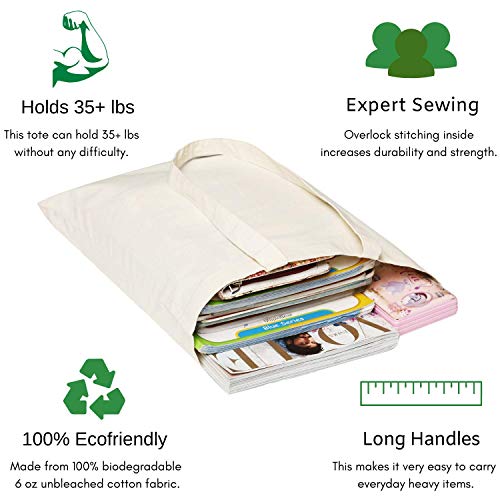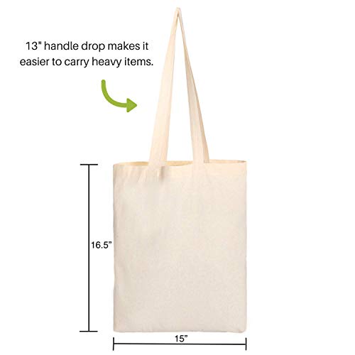VERSATILE; The 13 inch long handles of these canvas tote bags mean they can be easily slung over the shoulder; Inferior canvas grocery bags restrict your movement and are difficult to carry but these canvas shopping bags fit perfectly into your life