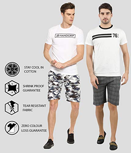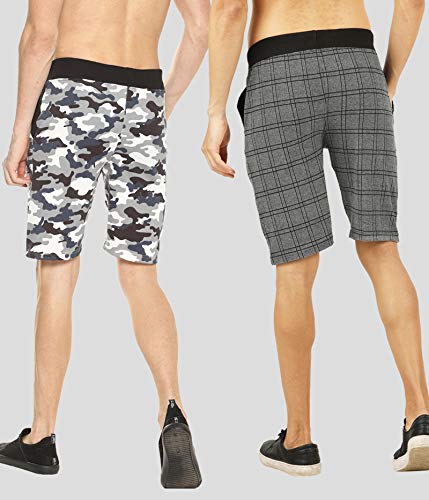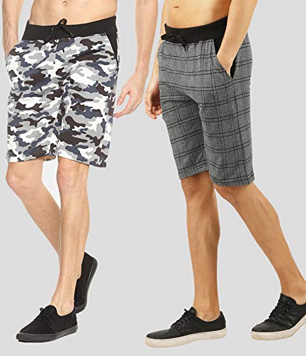 Men’s regular Grey Checkered and Camoouflage shorts 100% cotton loop knit regular fit knee length bio washed fabric silicon softener applied for better feel