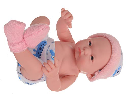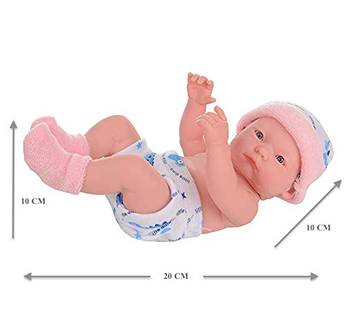 Comes with pretend clothing accessories – pants, a baby cap and a pair of socks