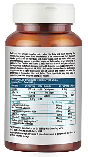 Calcium benefits the body in several ways, most notably for maintaining strong bones & muscle strength. Diets often fall short of the recommended daily Calcium intake, particularly in individuals with higher needs, such as older adults and postmenopausal women. Besides, vegetarian diets contain lower amounts of Calcium. Poor Calcium and Vitamin D intake may lead to weak and porous bones (osteoporosis) that affect bone and joint health. To avoid Calcium deficiency in the body, supplementation of Calcium becomes critical. HK Vitals Calcium is a comprehensive nutritional supplement of a highly bioavailable form of Calcium and Vitamin D3 with the goodness of Magnesium, Zinc, and Hadjod that help maintain your bone and joints strong and healthy.