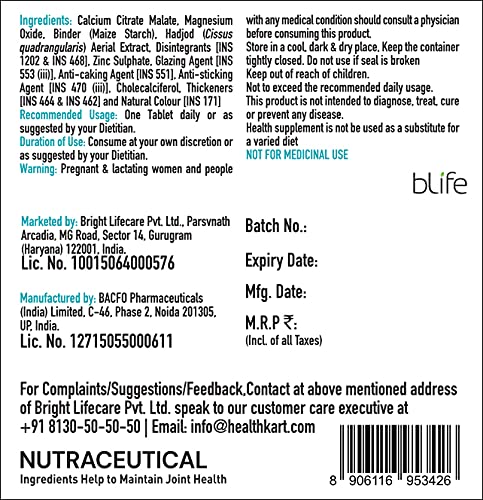 ENHANCES BONE & JOINT HEALTH: Calcium with Vitamin D3 in HK Vitals Calcium is required for the maintenance of bones and joints. Cissus and Vitamin D3 help improve joint health by improving cartilage synthesis and prevent articular cartilage degeneration.