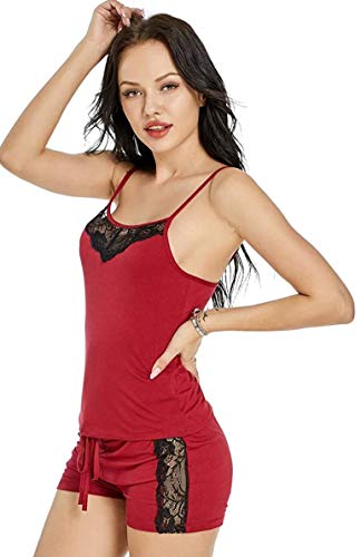 Snuggle up with your sweetie in this sexy pajamas set. Women’s lace pajama shorts set matching cute tank top and lace summer shorts. Casual and Sexy Pajama Set for a relaxing day or night.