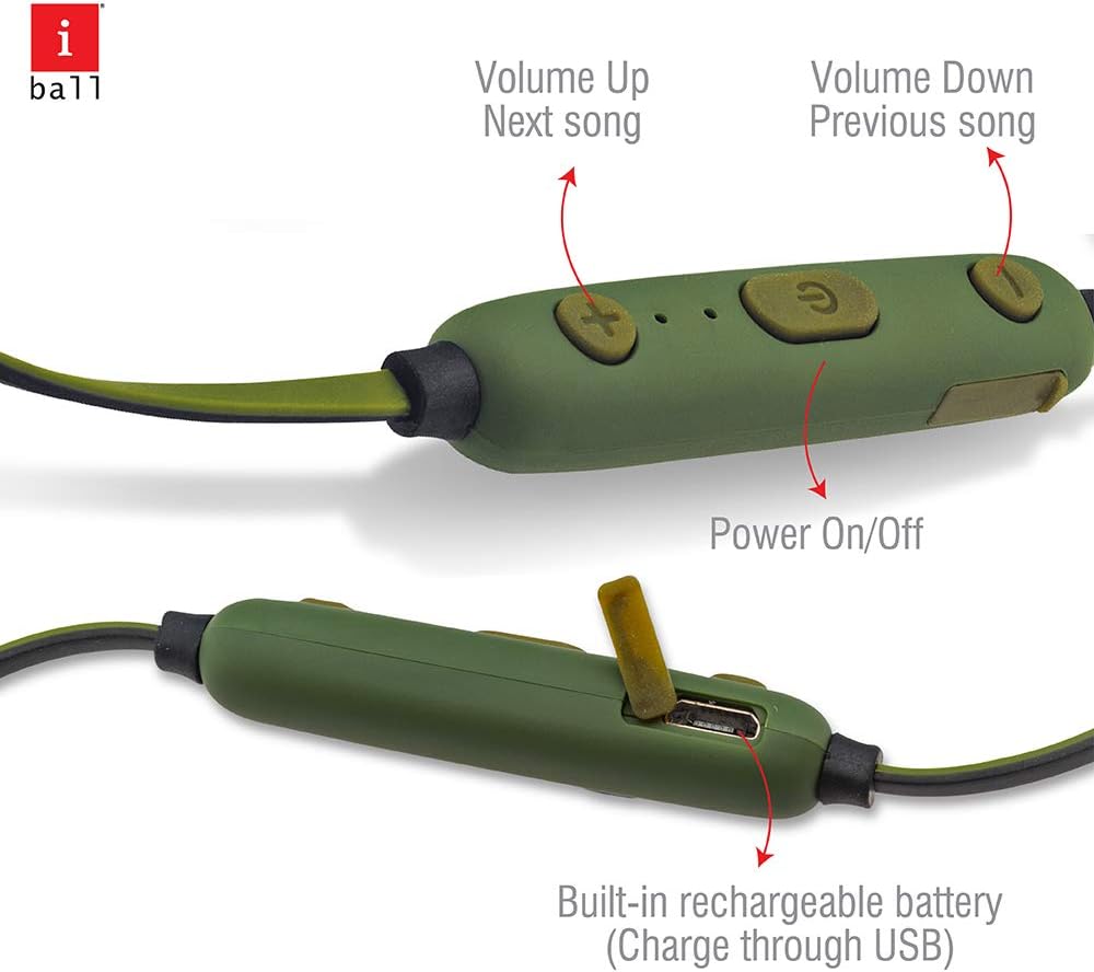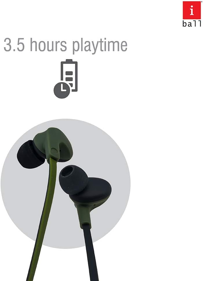 iBall EarWear Sporty Wireless Bluetooth Headset with Mic for All Smartphones (Military Green)