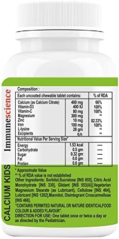 Research, innovation & Specialty Nutraceutical Formulations Are Core Value Integrity of Immune Science from last 29 years . Immune Science continuously Upgrades to meet Perfection And Excellence. In this process we source 100% Pure Natural Raw Material all around the globe to deliver best nutrient . Immune Science focus on Specialty Products related to Immune System , Energy Metabolism. Immune Science Kid”s Calcium Citrate Maleate Chewable Tablets are perfect Blend of Pure & Highly potent Natural Organically Sourced Calcium Vitamin D3 Vitamin C Iron Magnesium Zinc and L-Lysine Which Supports Strong Bones, height Performance, Strength, Energy, level and athletic performance. best calcium for kids and peace of mind for mother.