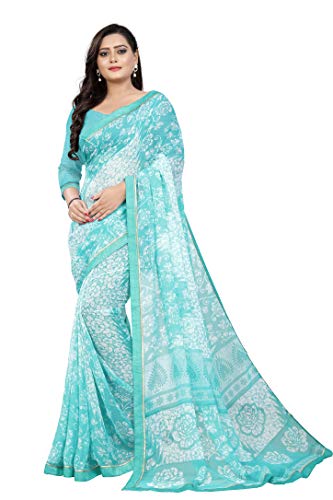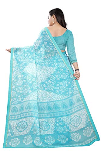 Jaanvi fashion Women’s Plain Weave Chiffon Saree With Blouse Piece (pari-sky-blue_Blue)