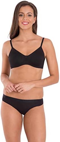 Super combed cotton elastane stretch fabric. Medium coverage seamless moulded bra. Double layered cups. Secret Shaper panel on the sides of the cup. Soft and smooth adjustable straps. Label free for all day comfort.