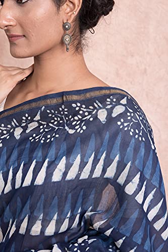 Saree Fabric : Pure Chanderi Silk || Length : 5.5 Meter || Work Type : Dabu Print, Indigo Sarees