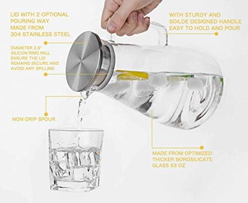 KOUZZINA glass pitcher is made from borosilicate glass which is lighter and stronger than regular glass, hand blown, heat-resistant and 100% lead-free. You can make tea, milk, juice, ice water, or white sangria, or anything you can think, with this pitcher. Our glass is slightly heavier than others on the market ensuring both the feeling of quality and the longest possible durability. Please rest assured that use.