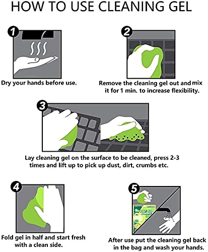 [SAFE & DURABLE]: Made of Reusable Biodegradable Gel, Not Stimulation to Skin, friendly to the environment, not sticky to hand.The light fragrance is very fresh and not pungent. Cleaning gel removes all dust and debris and leaves no residue.