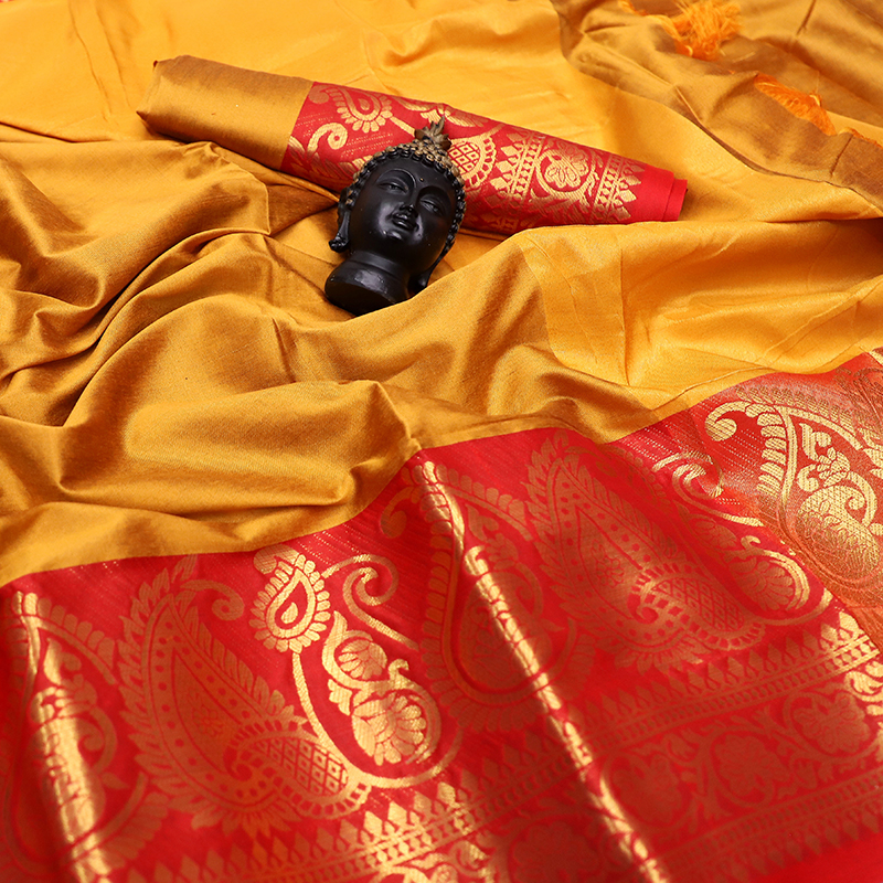 Work:- Aura Silk sarees in India are known for their border arrangements, exquisite designs & heavily laden zari work.