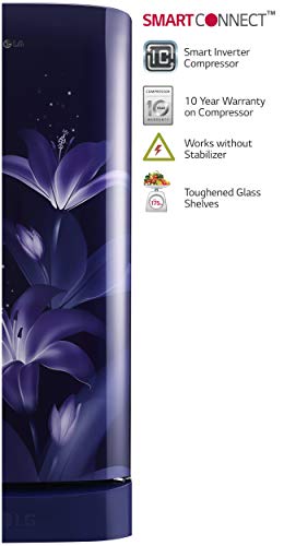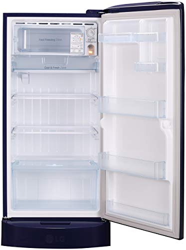 LG GL-D221ABGY 215 Ltr. is stylish single door refrigerator comes with unmatched performance, great savings, super silent operation and Smart inverter Compressor. This model refrigerator has 4 star rating in energy consumption. This uses direct cool technology and is more efficient and effective, retains the freshness up to 6-7 hours during power cuts. This refrigerator comes with 2 shelves of spill proof toughened glass material (unbreakable) which can take load up to 175 kg (Under test conducted at LG in house laboratory.), 2 bottle shelves, egg tray and a vegetable compartment of 21 liters capacity with lattice type cover to maintain the moisture level within it, anti-bacterial and air tighten gasket. Special features of these refrigerators are fast ice making, spacious chiller zone, base stand with drawer in which you can store items like potato and onion that don’t need cooling and do not need any stabilizer (90-310V) .