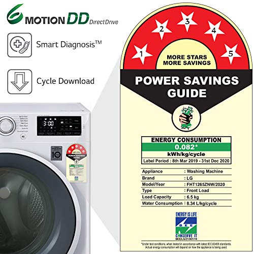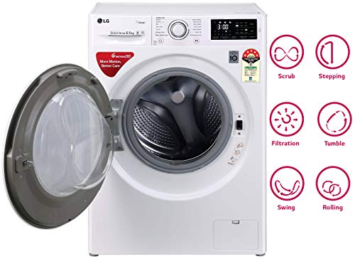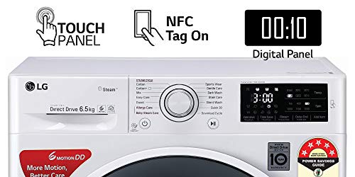 LG FHT1265ZNW Front Load washing machines with 6 Motion Direct drive enables different Wash Programs for effective wash quality. The machine smartly senses fabric types & offers different washes for different types of clothing. Also with NFC option now you can download customized wash programs from tons of options in the SmartThinQ app. Allergy Care Feature removes up to 99.9% germs from clothes and sterilises bacteria. Direct Drive technology that eliminates the use of belt and pulley for its operation and gives vibration less & noiseless performance with Silent Wash. It is a smart machine, just need to download LG ThinQ app on your smartphone and you can control the different processes of the machine such as deciding wash programs also update your machine by downloading new program as per new needs and also diagnosis error in case of problems. The auto restart facility ensures that you do not waste time, water, and energy as the machine starts from where it stopped during the power cut. The fuzzy logic checks for the extent of dirt and grease, the amount of soap and water to add, direction of spin, and so on. The machine rebalances washing load to ensure correct spinning. Else, it reduces spinning speed if an imbalance is detected. You can use the time delay function to delay the finishing time of a drying cycle. The maximum time delay is 19 hours, and the minimum time delay is 3 hours.. After the spin cycle the tub tumbles which does not allow the clothes to stick to the walls of the tub. It helps in avoiding the formation of wrinkles on the cloth. Such as underwear, which need no ironing.
