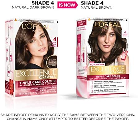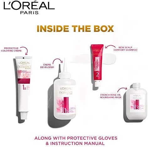 L’Oreal Paris Excellence Creme Hair Color is a triple care colour with triple care formula. 100 percent grey coverage from root to tips. Stronger hair, 85 percent more resistant to brushing. For a beautifully blended colour that complements your look, without a grey in sight. Rich, even, long lasting hair colour with a soft and silky touch. Excellence Creme hair colour triple protection means three ways to care for your hair: ceramide protects, pro-keratin strengthens & collagen replenishes. In this pack you will find: the protective serum, colouring creme and developer and conditioner.