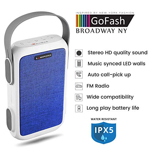 होम » LUMIFORD GoFash-Broadway Alexa built-in Voice Control wireless Bluetooth Speaker with 16 W stereo with Music Sync LED Light Walls, Party time Portable Bluetooth speaker, 10 meter range connectivity with voice chat enabled(Blue)