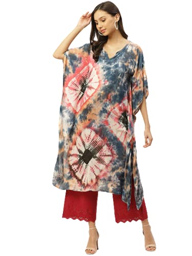 STYLE & PATTERN: Crepe Printed Kaftan Kurta ||NECKLINE: Round Neck || SLEEVES: Elbow Sleeves