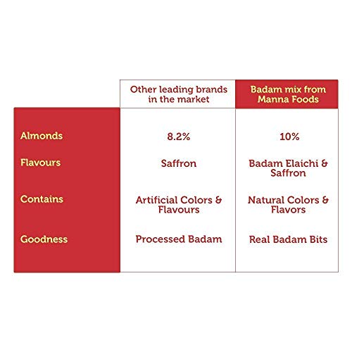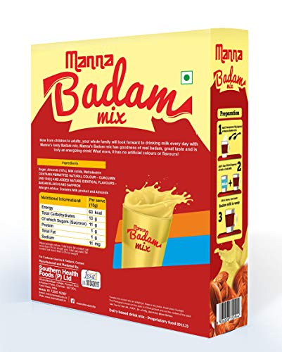 Now from children to adults, your whole family will look forward to drinking milk everyday with Manna’s tasty Badam Mix. Manna’s Badam Mix has goodness of real almonds (badam), great taste and is truly an energising drink. What’s more? It has no artificial colours or flavours.