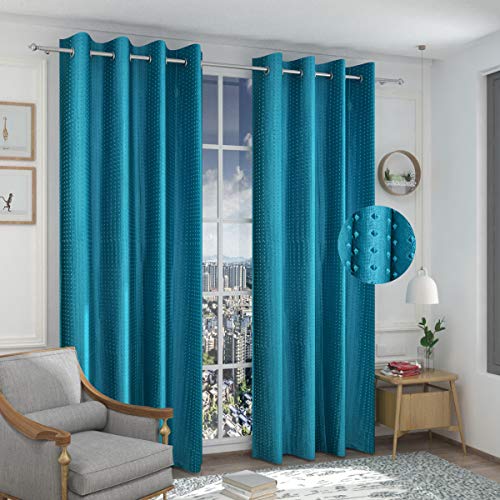 MICASA Polyester Plain Pyramid Embossed Curtain,Pack of 2 (Aqua, 5 – FEET)