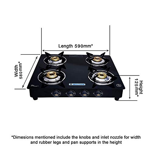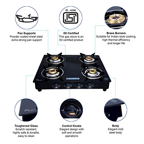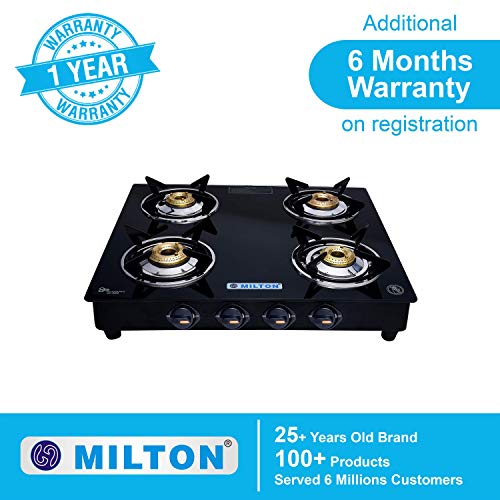 When you combine Elegant Mild Steel Frame Body with 4 highly efficient brass burners along with elegant & shatterproof glass top you get a thing of beauty for your kitchen. Milton gas stoves are designed to blend in your kitchen and make it safe & look beautiful. It is easy to maintain & clean. The mild steel body ensures that it looks spic & span for years to come. The brass burners pack a punch in them and what you get is an efficient, long-lasting, elegant stove for your kitchen for years to come.
