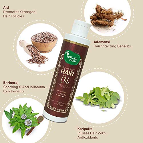 Structural Repair from Within: Mother Sparsh 30 Herbs Oil works to penetrate the hair shaft & follicles to strengthen them from core & give you healthy renewed tresses!