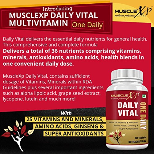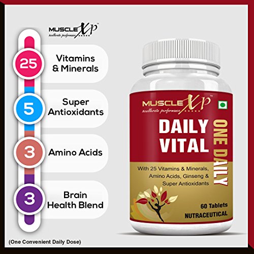 MuscleXP Daily Vital Multivitamin With 25 Vitamins & Minerals, 5 Super Antioxidants & Ginseng, 60 Tablets
