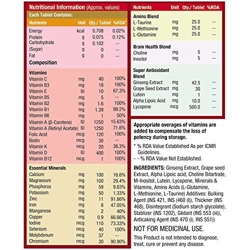 Features amino acids. Contains Grape seed extract, Alpha lipoic acid, Ginseng extract, Lutein, Lycopene
