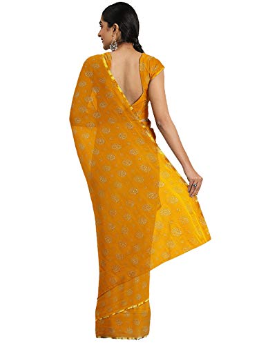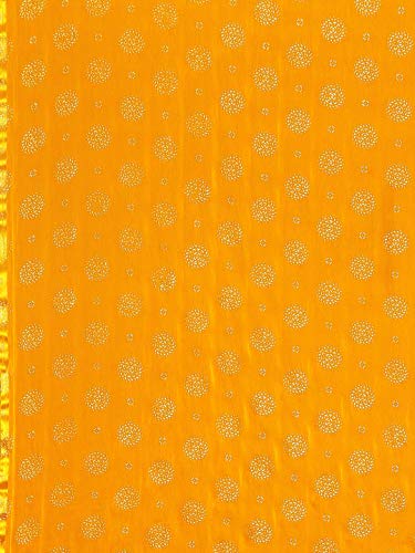 Saree color:Yellow, Blouse Color:Yellow, Saree Fabric:Georgette Chiffon Blend, Blouse Fabric:Brocade, Pattern and Print:Emblished, Other Pattern:Floral, Type:PochampallySaree