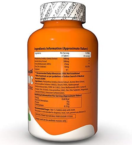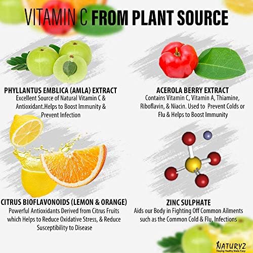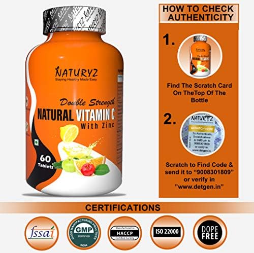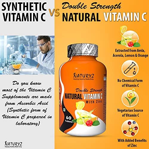Natural Ingredients: Naturyz double strength Vitamin C is made up of pure, natural plant based ingredients like Phyllantus Emblica Extract (Amla), Acerola Berry Extract, Citrus Bioflavonoids (Lemon & Orange) along with Zinc