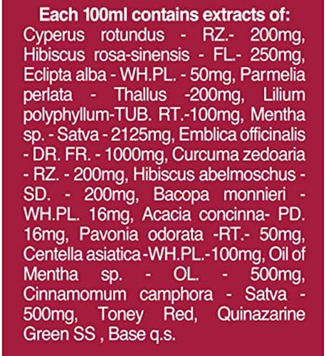 Contains the goodness of Sesame oil, Japa, Bringhraj, Bharmi, Amla, Thyme and Rosemary Oil.