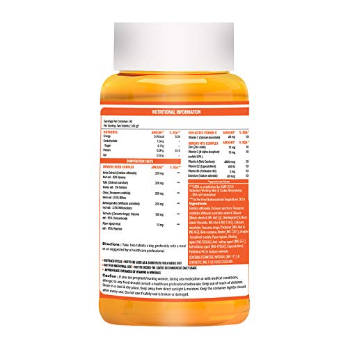 Richness of high quality traditional herbs -Amla, Tulsi, Giloy, Ashwagandha, Turmeric, & Black Pepper, for optimum Vitamin C level, enhanced absorption, improved strength & immune function to ward off infections and maintain overall well-being.
