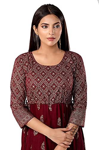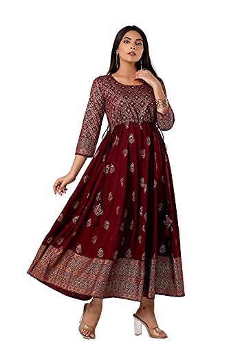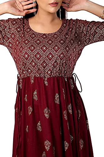 Neck Style : Round Neck | rayon anarkali kurtis for women latest design party wear | kurti for girls stylish | women’s rayon printed flared gown kurti with dori