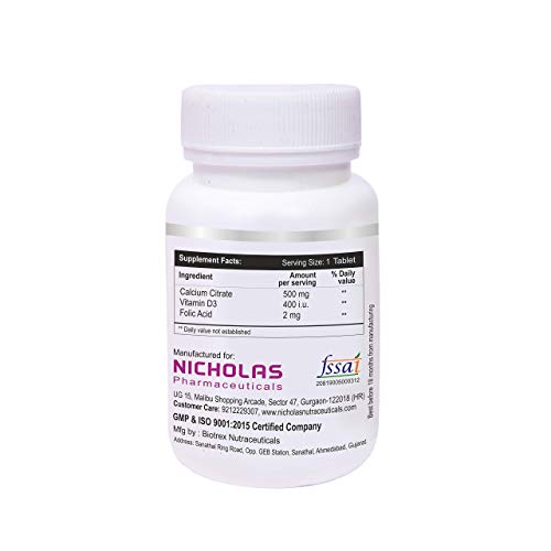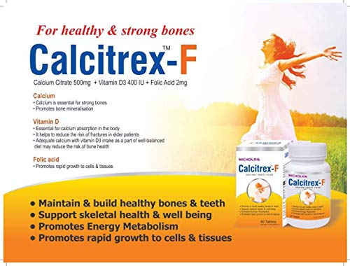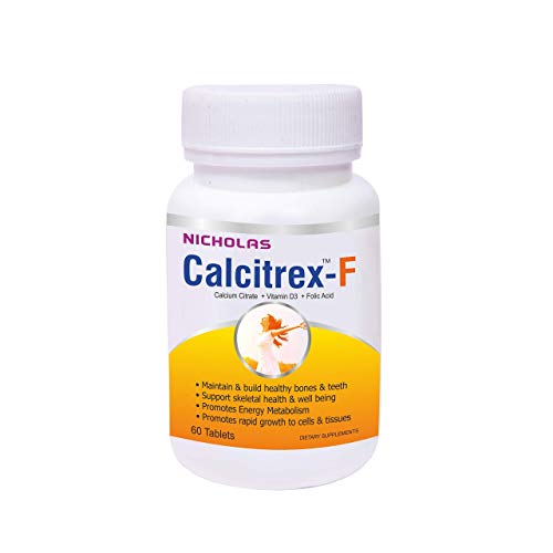 होम » Nicholas Nutraceuticals Calcitrex-F Calcium Citrate, Vitamin D3 and Folic Acid Supplement for Strong Bones and Teeth – 60 Tablets