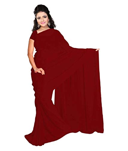 Plain Saree Gorgette Fabric Export Quality Home Washable 6.30 Size With Blouse Piece A Lot Of Colours Available Running Unstitched Blouse Piece Plain Combo Sarees For Women