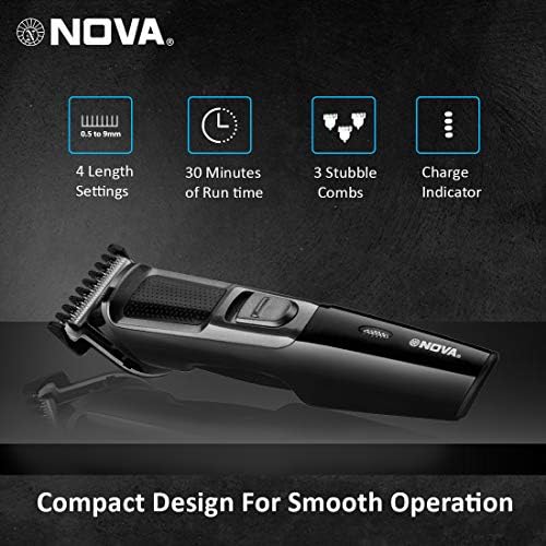 This cordless Titanium coated trimmer from Nova is a stunning piece. Grab this trimmer and enjoy hassle-free grooming experience at home.This trimmer ensures ease of use, thanks to its ergonomic design. So look dashing and trim your beard and your underarms and be party-ready always.This trimmer is not just a device used for trimming. It comes with a number of other attachments which will ensure that you look groomed. Its Titanium coated blade will give you a complete and clean trim without cutting or damaging your skin.Whether you are at home or holidaying, with this trimmer in handy, you don’t have to worry about looking shabby as this trimmer is rechargeable and can be carried along with you wherever you.