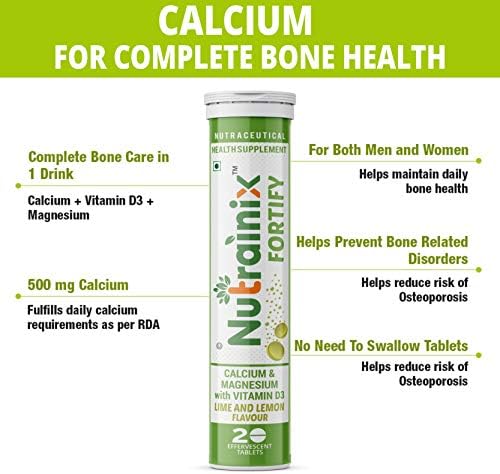 Nutrainix Fortify Calcium effervescent Tablets are a unique combination of calcium, magnesium & vitamin D3 which increases the bioavailability of calcium and makes it a complete solution