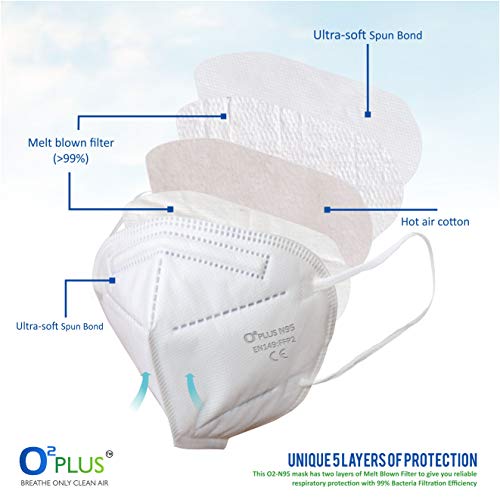 O2-N95 face mask is a high quality personal protective mask designed to protect from airborne particles. It consists 5 layer of high-quality filters for effective filtration and protects Nose, Mouth from virus, dust, odour, pollutant, toxins and PM2.5 particles. It blocks >98% of very small (0.3 micron) test particles.