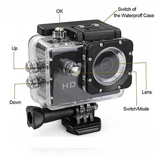 HD sports action camera with additional feature, which is high-definition digital motion video recording device designed to meet your sporting needs. It has a variety of industry-leading features including digital video recording, photo shooting, audio recording, video display and detachable battery, which makes it perfect for vehicle data recording, photo shooting, outdoor sports, home security, etc. with supporting up to 32GB Storage SD Card. 900mAh rechargeable lithium-ion battery, offers 720p, VGA (848 x 480) and QVGA (640 x 480) settings in addition to 1080p Full HD, Captures 12 MP Still Photos, Ultra-Wide 170° Lens. This is the most cost-effective action camera in market.