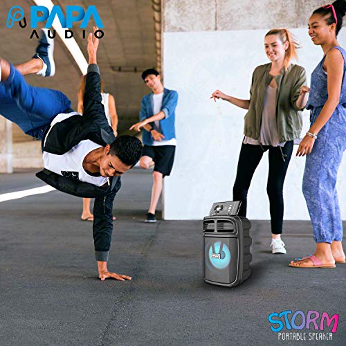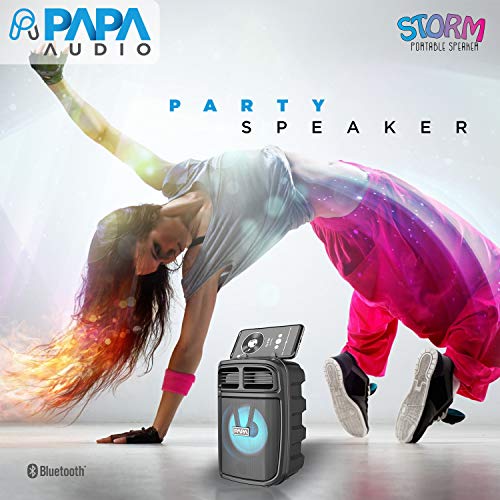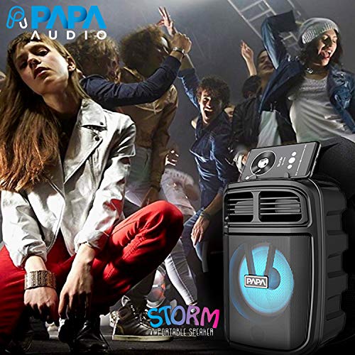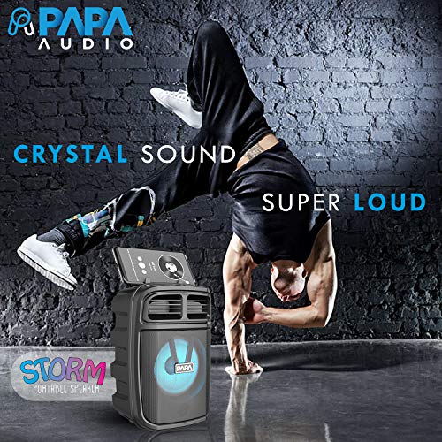 Papa Audio Storm (Black) – Bluetooth Karaoke Party Speaker : Welcome to the age of new sound technology with the Papa Audio Storm Bluetooth Karaoke Party Speaker. Whether it’s your daily music sessions or the desire to carry a speaker with you on vacations or short trips, this speaker is ideal. The compact design and rugged outer body make it scratch-free so that you never have to worry about accidentally getting it damaged. Seamless Bluetooth Connectivity : The 5.1 Bluetooth version of this portable party speaker allows for connectivity anywhere and at any given time. The dual-mode connection (BT and Aux) adds to its connectivity prowess. Connect your phone, tablet, and other devices easily to play music whenever your heart desires. Long Battery Life : With its long battery life and the short time it takes to get charged, the speaker gives up to four hours of playing time. The operating mode of USB/TF/AUX/FM/BT and output power of 10 W make it one of the most powerful portable speakers to have in your possession. TWS Technology : With the TWS dual-speakers surround sound technology, enjoy yourself with true 3D surround sound and get a double shock of the ear by the speaker.