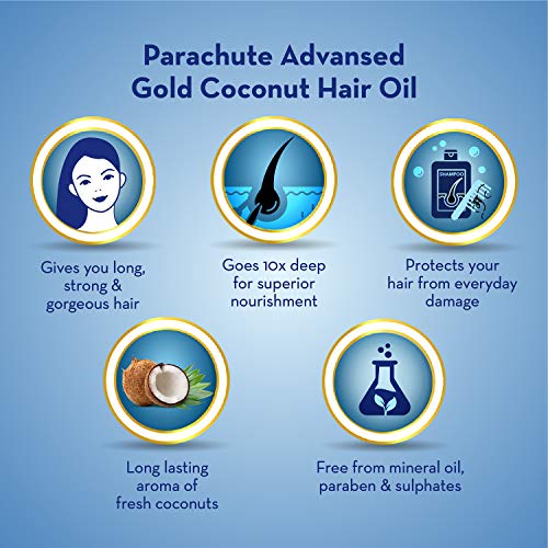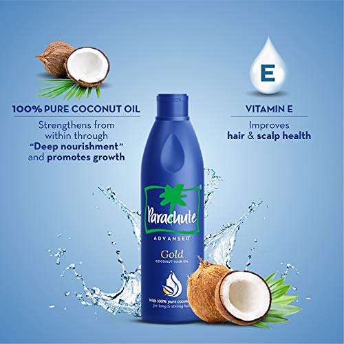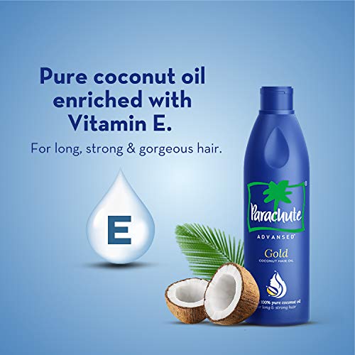 Your hair is a reflection of who you are. It’s your identity. And this beautiful relationship deserves care and nourishment. Parachute Advansed Gold strengthens this relationship through deep nourishment with the goodness of Pure Coconut Oil, and Vitamin E so that you get long, strong & gorgeous hair. Daily grooming practices like washing, brushing and styling can cause damage to your hair and leave it looking frizzy, broken and dry. Pure Coconut oil provides a protective layer, moisturizes and softens your hair, reduces breakage, and protects it from protein loss and environmental damages like wind, sun and smoke. Vitamin E’s natural anti-oxidant properties improves hair and scalp health. Repair up to 50% of damage with a single application of Parachute Advansed Gold coconut hair oil. Made with the highest quality standards, every coconut that goes into Parachute Advansed Gold Hair Oil is handpicked and sun-dried to ensure a fresh & natural, long lasting aroma. It is free from parabens, sulphates, mineral oil and silicones. Give your hair the best nourishment with Parachute Advansed Gold Hair Oil, and see them grow long, strong and gorgeous.