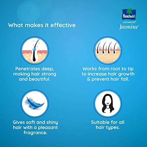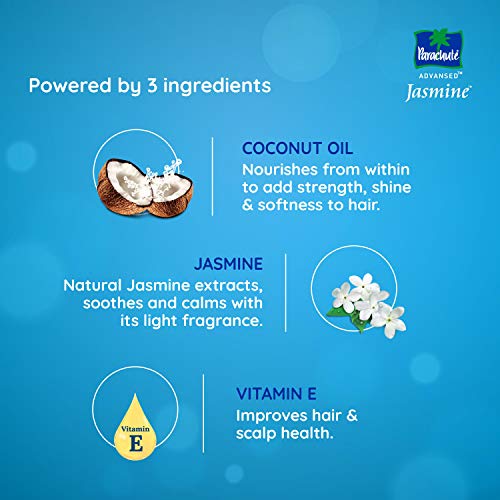 It’s time for your hair to take the spotlight and bring out its shine! Coconut oil enriched with goodness of Vitamin E & jasmine extracts, Parachute Advansed Jasmine coconut hair oil gives your hair the strength and nourishment it needs, while leaving it soft, silky and shiny. What’s more, this light non-sticky hair oil comes with the fragrance of jasmine for a soothing, pleasant experience and Vitamin E which improves your scalp and hair health .Nourish your hair with this advansed hair oil to fight everyday damage and get a strong, silky hair that shines, all day long. For best results, apply parachute advanced jasmine coconut hair oil in the night and wash it off in the morning. That gives the oil time to go deep into the roots and nourish your hair from within. And the best part of this advansed hair oil is that it is so light and non-sticky, that it’s perfect to lightly apply in your hair after a hair-wash. This advansed hair oil is just the recipe for your hair that looks nourished and endures a healthy shine, all day long.